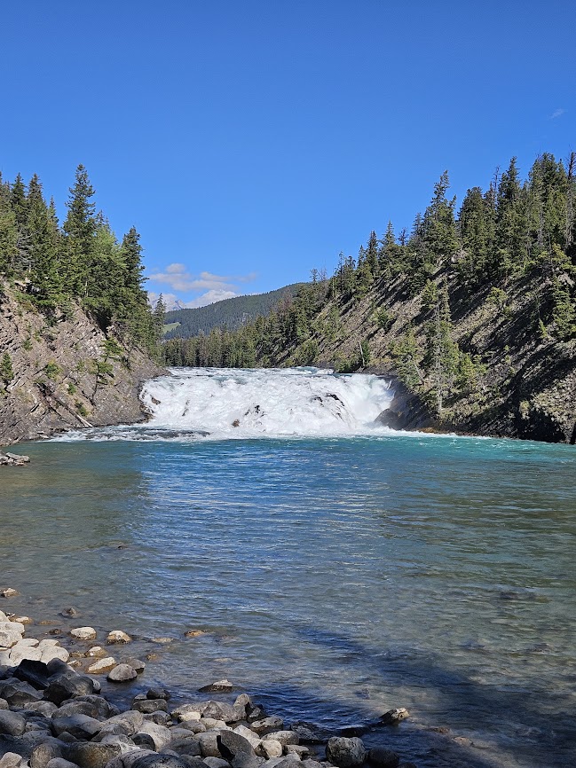 The bus left the gardens and motored to Bow River and Bow Falls.