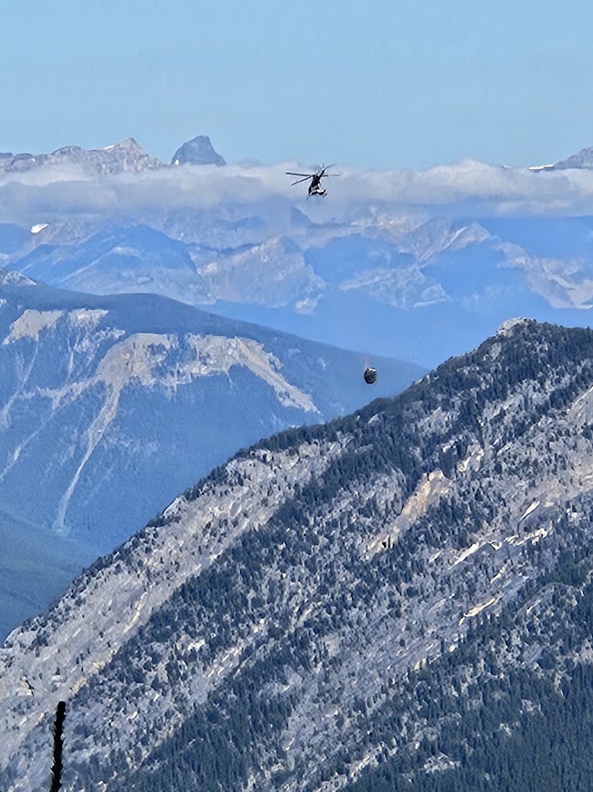 At the top there was a helicopter hovering over the mountain. Most of the time when you see a helicopter flying around a mountaintop they are either search and rescue or fighting a fire. Not this time. There was some construction being done at the highest point where the climbers like to go. A helicopter was the only way they could bring up construction supplies and take out waste. Sounds like an expensive project to me. But it was a neat thing to watch.