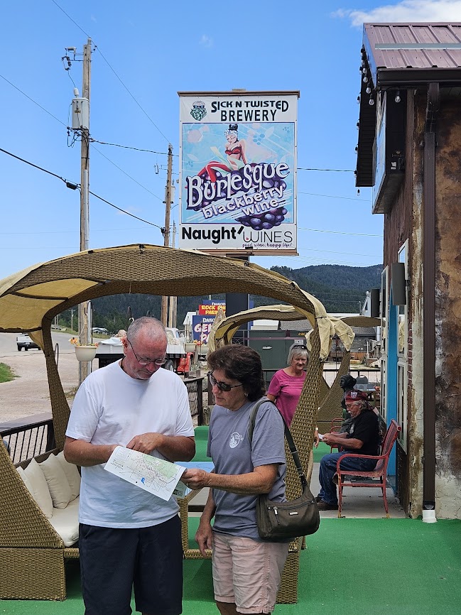 On our way to Spearfish we stopped for gas at a Pilot. Big mistake!! Usually, Pilots are great places for RV’s to fuel up. This time though, I’m shocked that we got in and out of the station without seeing a fistfight. The RV’s and motorcycles were crooking, curving, batching and blocking the entrance and exit. One of our friends got behind a woman who would not move her car away from the gas tank. She was waiting for her pizza to be cooked. Pam and I felt very fortunate to leave there with gas and without a scratch. Sorry I didn’t take a picture.