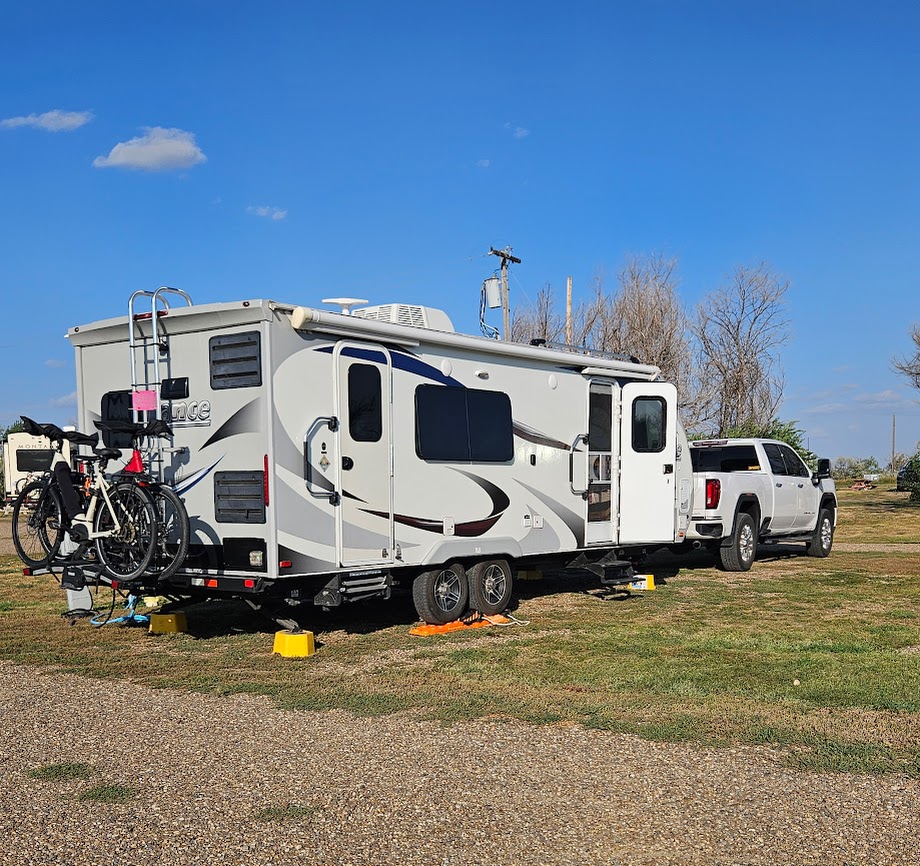 Buffalo Hot Springs Resort was an interesting place. It was literally in the middle of absolutely nowhere. We parked our camper on a lumpy site and needed some of those orange lifts under the wheels to level us out. When we aren’t level, the slide struggles and it’s also harder on the refrigerator or so the experts say. The navigator is also the leveler. I’m not sure I ever mentioned that.