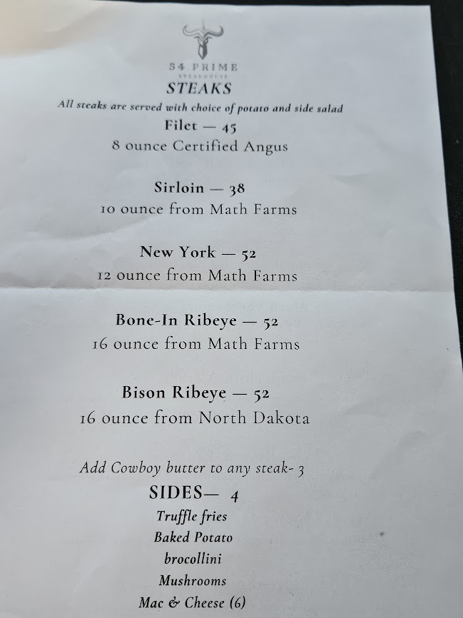 You may have noticed that many of the steaks on the menu are from Math Farms which was down the road a piece from the saloon. It took me minus 2 seconds to make up my mind. Let’s go.